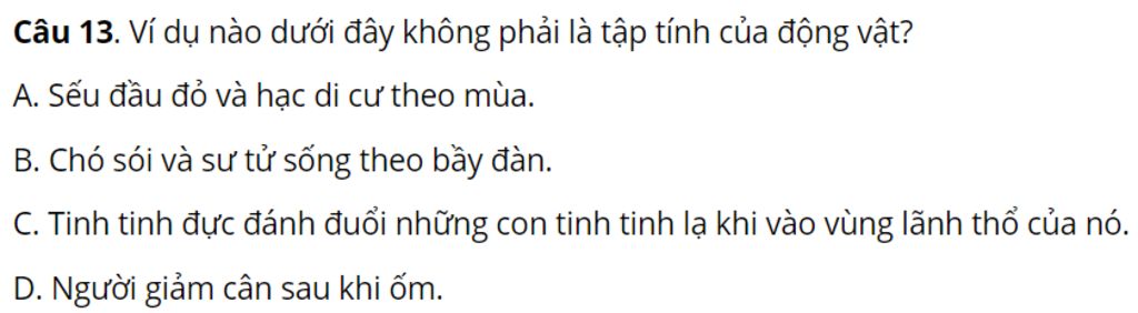 `-` Việc giảm cân sau khi ốm không phải là một tập tính của động vật.