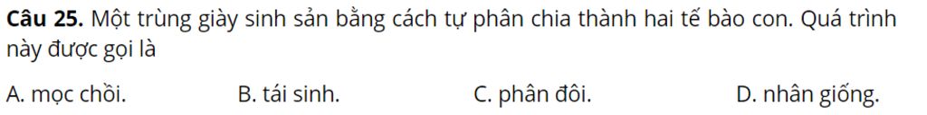 `-` Trùng giày sinh sản vô tính, cơ thể mẹ phân đôi tạo thành cơ thể con
