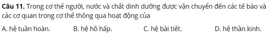 `@`Hệ tuần hoàn có vai trò vận chuyển máu, chất dinh dưỡng và `oxy` đến các tế bào và cơ quan trong cơ thể, cũng như loại bỏ các sản phẩm phụ của sự trao đổi chất