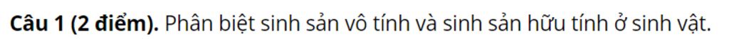 `-`Sinh sản vô tính là quá trình mà `1` sinh vật tạo ra con cái mới mà không cần sự giao phối giữa các tế bào sinh dục. Sinh sản vô tính tạo ra con cái mới có thể giống hoặc không giống với sinh vật cha mẹ