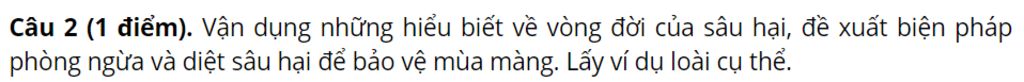 `-` Để phòng ngừa và tiêu diệt sâu hại, cần tìm hiểu vòng đời của sâu hại; có các biện pháp phù hợp để tiêu diệt một giai đoạn trứng hoặc ấu trùng trong vòng đời của chúng, có kế hoạch điều chỉnh nhằm bảo vệ mùa màng tốt hơn.