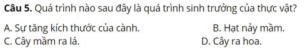 `@`Sự tăng kích thước của cành là quá trình sinh trưởng của thực vật