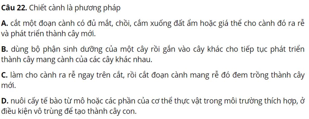 `-` Giải thích : Vì đó là phương pháp làm cho cành ra rễ ngay trên cắt, rồi cắt đoạn cành mang rễ đó đem trồng thành cây mới.
