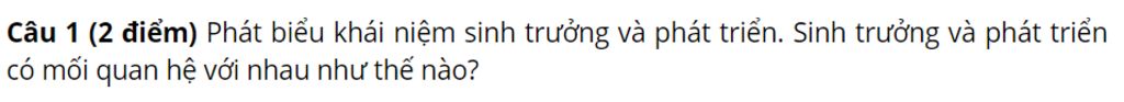 `-` Phát triển bao gồm sinh trưởng, thay đổi cấu trúc cơ thể.