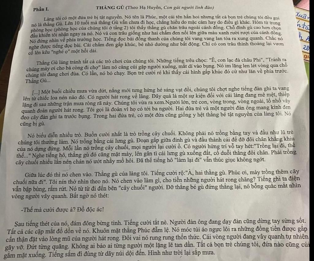Câu 2:Sau khi đọc văn bản,em cảm thấy thật tội nghiệp cho thằng Đức vì nó phải đối mặt với sự chê bai, coi thường từ người khác và những khó khăn nó gặp vì tật nguyền trong cuộc sống.Từ đó,em cảm thấy đồng cảm cho số phận của thằng Đức. Đồng thời phải suy tư về cách mọi người đối xử với người khuyết tật.Em mong,xã hội sẽ thay đổi để đối xử một cách công bằng và nhân đạo đối với người bị khuyết tật.