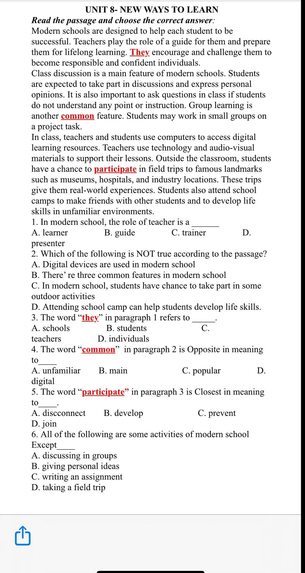 2. B (two common features: class discussion and group learning)
