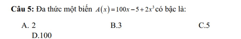`@` Hạng tử có luỹ thừa của biến cao nhất trong đa thức `A(x)` là `2x^3`