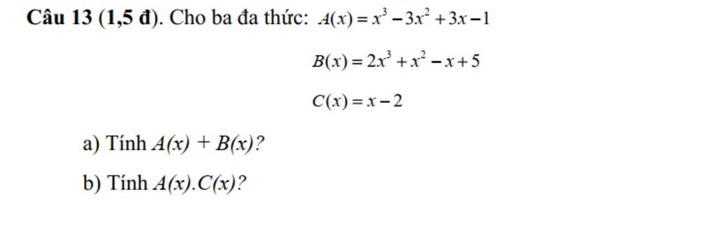 `b)A(x).C(x) =(x^3-3x^2+3x-1)(x-2)`