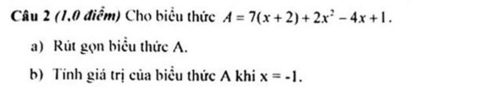 `a)A=7(x+2)+2x^2 -4x+1`