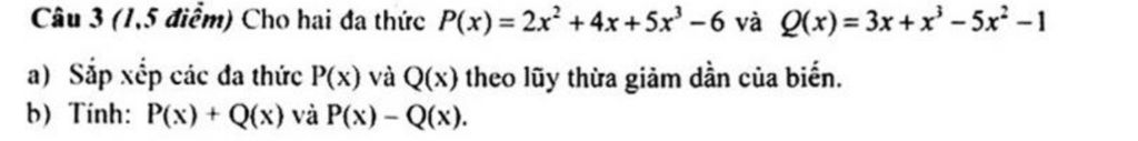 `b, P(x) + Q(x) = 5x³ + 2x² + 4x - 6 + x³ - 5x² + 3x - 1`