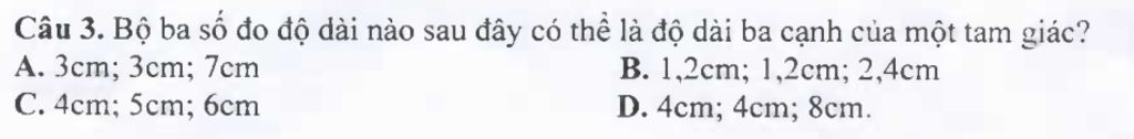 `C.{(4+5>6),(4+6>5),(5+6>4):}->` Chọn