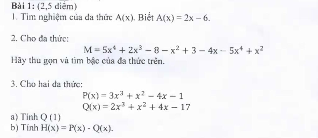 a) Thay `x = 1` vào `Q(x)`, ta có: