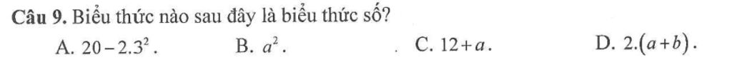 Biểu thức `20-2.3^2` là biểu thức số