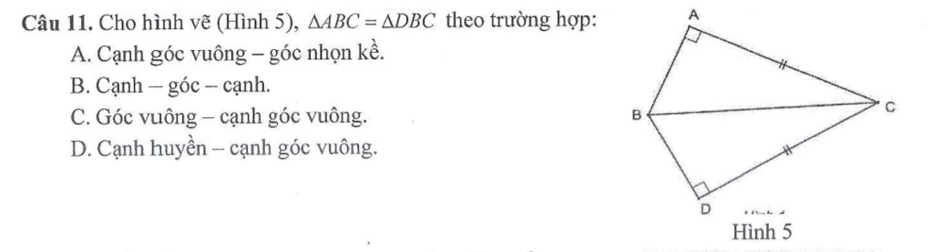 `DeltaABC=DeltaDBC` theo trường hợp cạnh huyền - cạnh góc vuông