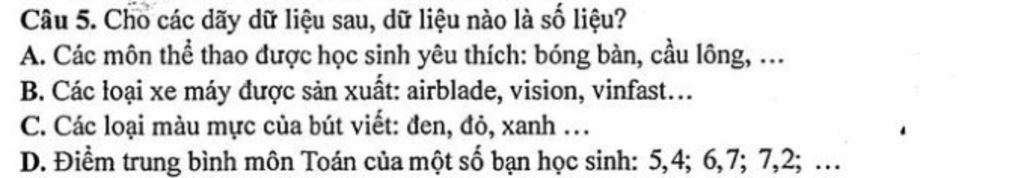 `D.` Là dữ liệu là số vì chỉ điểm trung bình