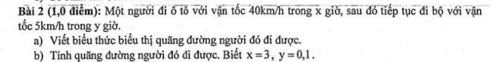 `b)` Thay `x=3;y=0,1` vào biểu thức, ta được: