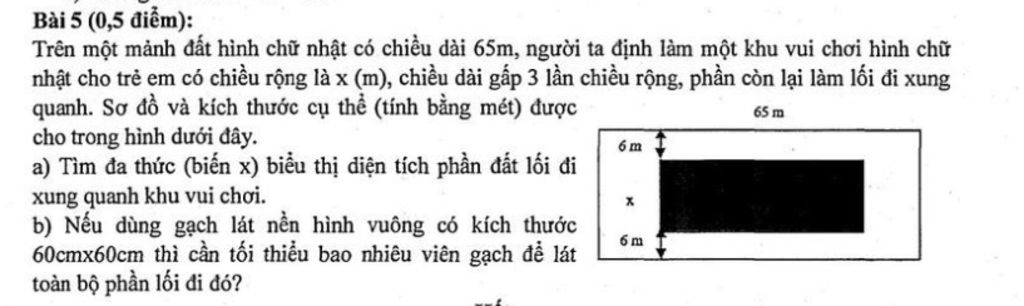 `to` Đa thức (biến x) biểu thị diện tích phần đất lối đi xung quanh khu vui chơi :