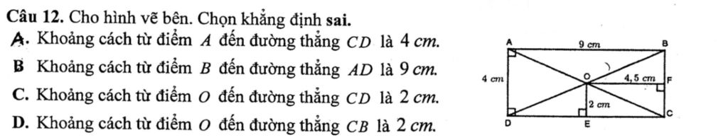A. Khoảng cách từ điểm A đến đường thẳng CD là 4 cm.