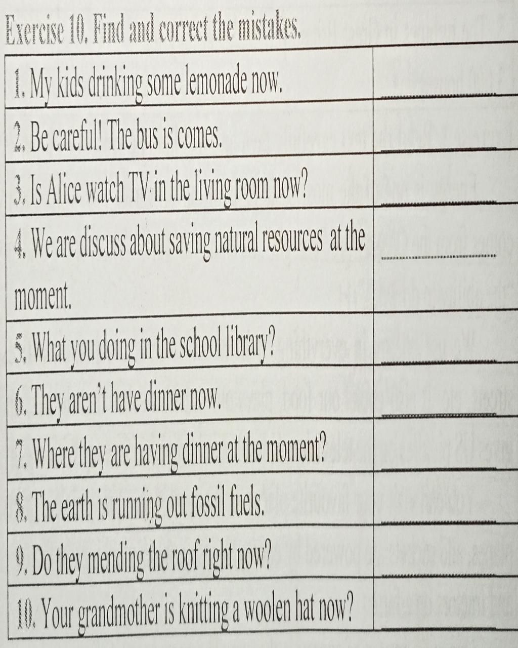 1/ my kids are drinking some lemonade now ( dấu hiệu thì httd : now)
