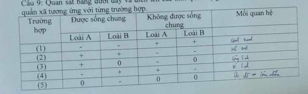 Khi sống chung Loài A không có lợi, không có hại nhưng loài B lại có hại. Nhưng khi tách riêng thì cả 2 loài không có hại và cũng không có lợi.