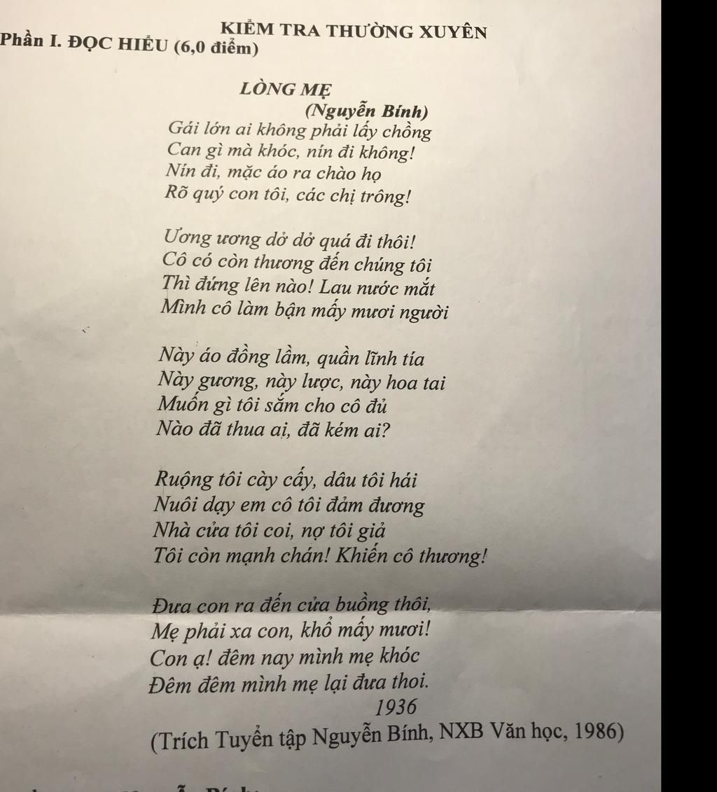Có rất nhiều bài thơ viết về hình ảnh người mẹ. Đôi khi đó là vẻ đẹp dịu dàng, tình yêu thương con. Đôi khi lại là sự tảo tần, giản dị hay thậm chí là khó nhọc khiến cho người đọc day dứt không nguôi. Hình ảnh người mẹ trong bài thơ trên đã để lại trong lòng tôi sự xúc động sâu sắc như thế. Người mẹ trong bài thơ với những chuyện giản đơn thường ngày, tưởng như không có điều gì to tát mà lại khiến tôi ngẫm ngợi không thôi.