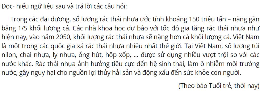 `*` Đoạn trích trên đã đề cập đến thực trạng của rác thải nhựa thông qua các số liệu, đồng thời nêu lên tác hại của nó đến môi trường, con người,....