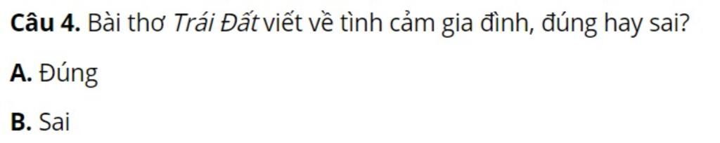 `@` Bài thơ "Trái Đất" viết về tình cảm đối với Trái Đất, đối với thiên nhiên cây cảnh.