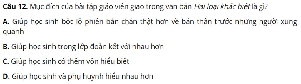Mục đích của bài tập giáo viên giao trong văn bản Hai loại khác biệt là gì?