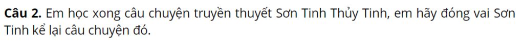 `@` Em học xong câu truyện truyền thuyết Sơn Tinh, Thủy Tinh, em hãy đóng vai Sơn Tinh kể lại câu chuyện đó.
