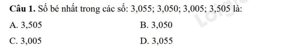 `->3,005` là số bé nhất trong những số đề bài cho