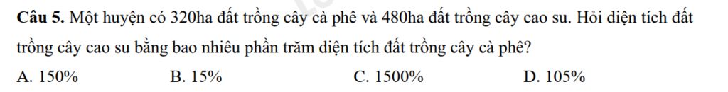 Diện tích đất trồng cây cao su bằng số phần trăm diện tích trồng cây cà phê là: