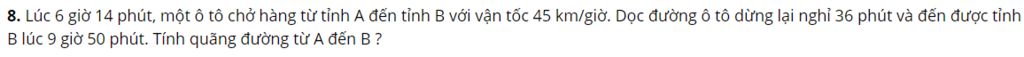 Thời gian ô tô đi từ `A` đến `B` là `:`