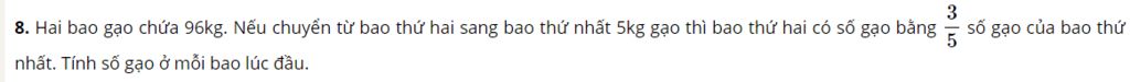 Đáp số `:` Bao thứ nhât `:55kg` và bao thứ hai `41kg`