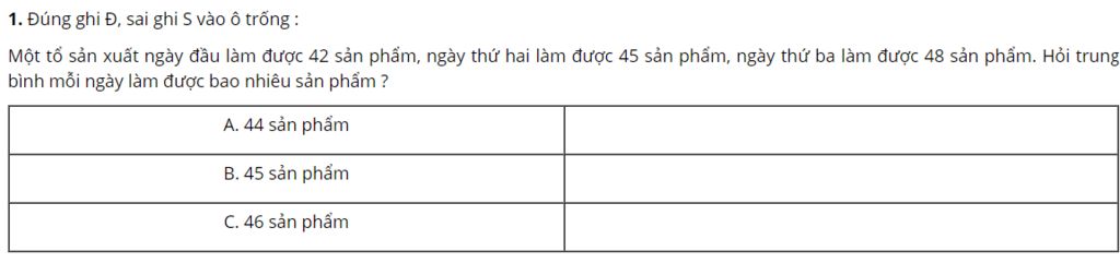 `(42 + 45 + 48) : 3 = 45` (sản phẩm)