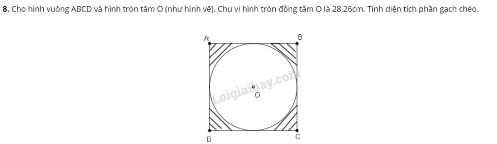 Đường kính hình tròn tâm `O` là (hay cạnh hình vuông):