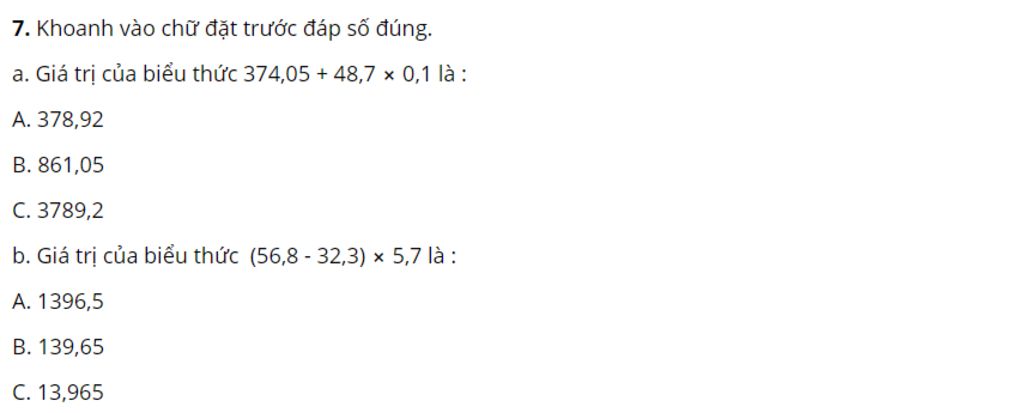7. Khoanh vào chữ đặt trước đáp số đúng.