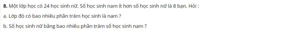 Số học sinh nữ bằng số phần trăm số học sinh nam là :