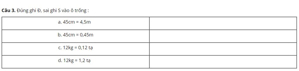 `d.` `12kg = 12 : 100 = 0,12` tạ.