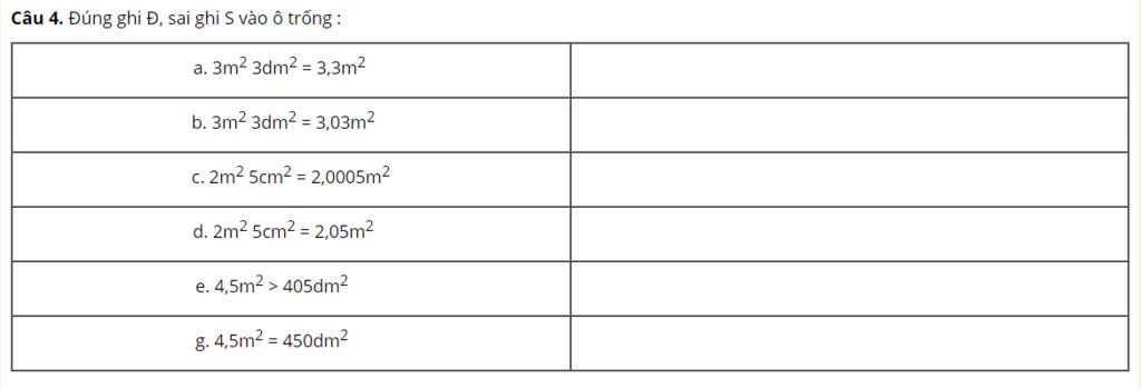 `g`. `4,5` m`²` `=` `450` dm`²`