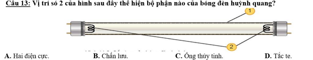 `-` Theo hình vẽ, thì số `2` đang chỉ bộ phận ống thủy tinh của bóng đèn huỳnh quang