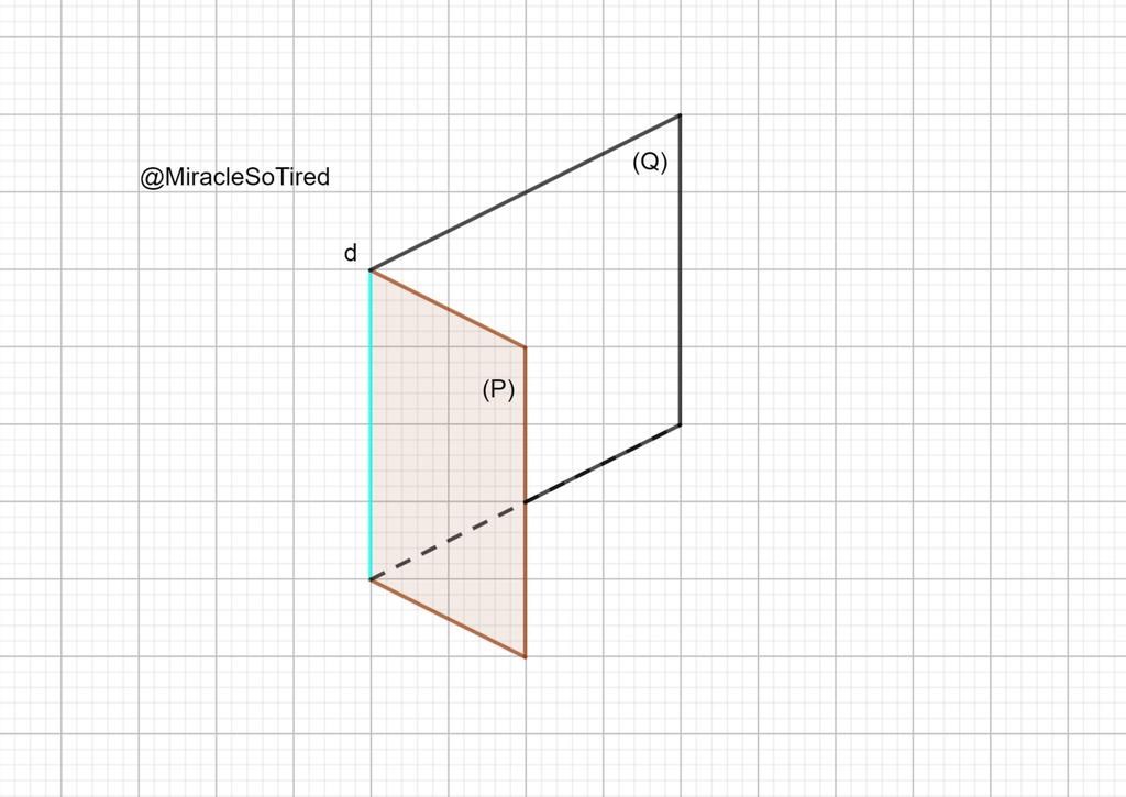 Như hình vẽ, góc nhị diện gồm hai nửa mặt phẳng `(P)` và `(Q)` cò chung bờ là đường thẳng `d`.
