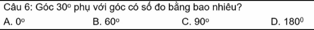 một góc 30 độ , đề bài cho suy ra góc còn lại bằng 90 độ - 30 độ = 60 độ ,kl : góc còn lại 90 độ