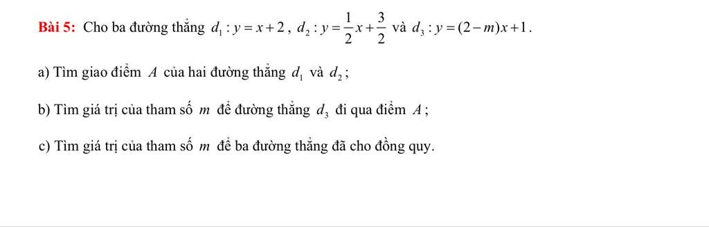 Bài 5: Cho ba đường thẳng d:y=x+2, d:y=2x+, và d:y=(2−m)x+1.
