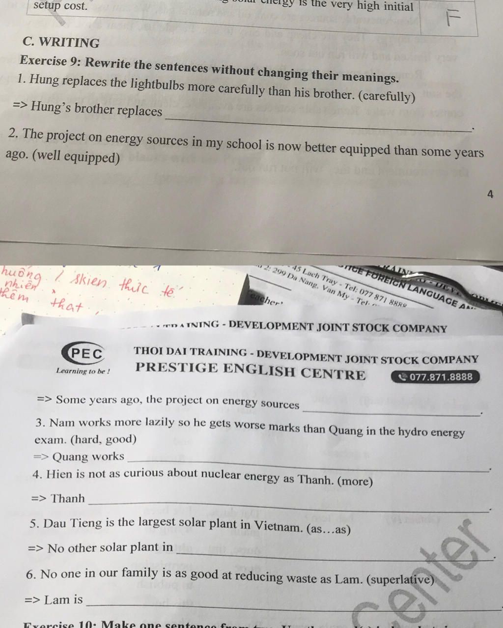 Exercise 9: Rewrite the sentences without changing their meanings.