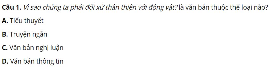 `->` vì nó đề cập đến việc đưa ra lập luận và ý kiến để thuyết phục người đọc về việc đối xử thân thiện với động vật.