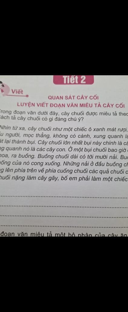 `+` Tả bề ngoài của cây chuối `->` tả chi tiết. (buồng chuối, nải chuối)