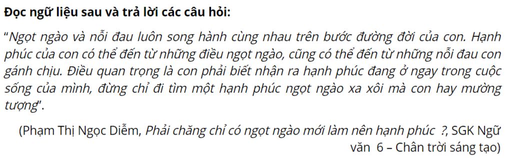 `=>` Đoạn trích trên nói về quan điểm của tác giả về vấn đề được đề cập đến trong văn bản (những đắng cay, gian nan trên đường đời mà con phải trải qua).