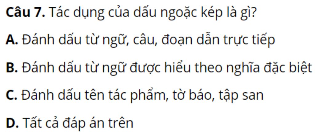 Câu `7.` Tác dụng của dấu ngoặc kép là gì?