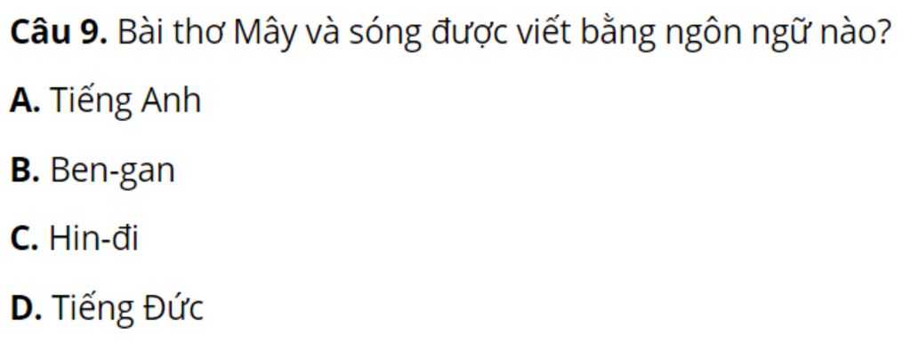 `-` Giải thích : Vì Ben-gan chính là ngôn ngữ được viết trong bài thơ Mây và sóng