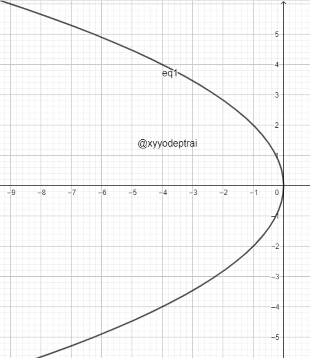 Vì đồ thị parabol có dạng `y = ax^2 + b(a ne 0)` mà `y^2 = -4x` không thỏa mãn tiêu chí nên `y^2 = -4x` không phải là đường chuẩn có dạng parabol.